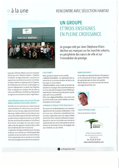 Dans l'édition spéciale "Habitat - L'émotion au coeur de l'architecture" du magazine Atout Aveyron, la stratégie multi-services de Selection Groupe est mise à l'honneur. Proposer une nouvelle expérience immobilière à haute valeur humaine, voilà l'objectif affiché par Jean-Stéphane Vilain, président fondateur, qui développe au sein de Selection Groupe différentes entités enrichissant son coeur de métier.