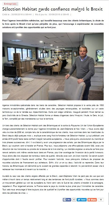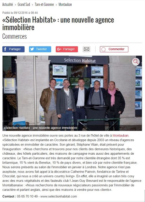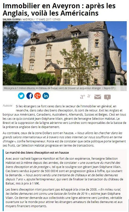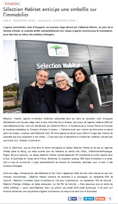 Lire les articles sur LE FIGARO IMMOBILIER, FRANCE BLEU, Centre Presse et La Dépêche.