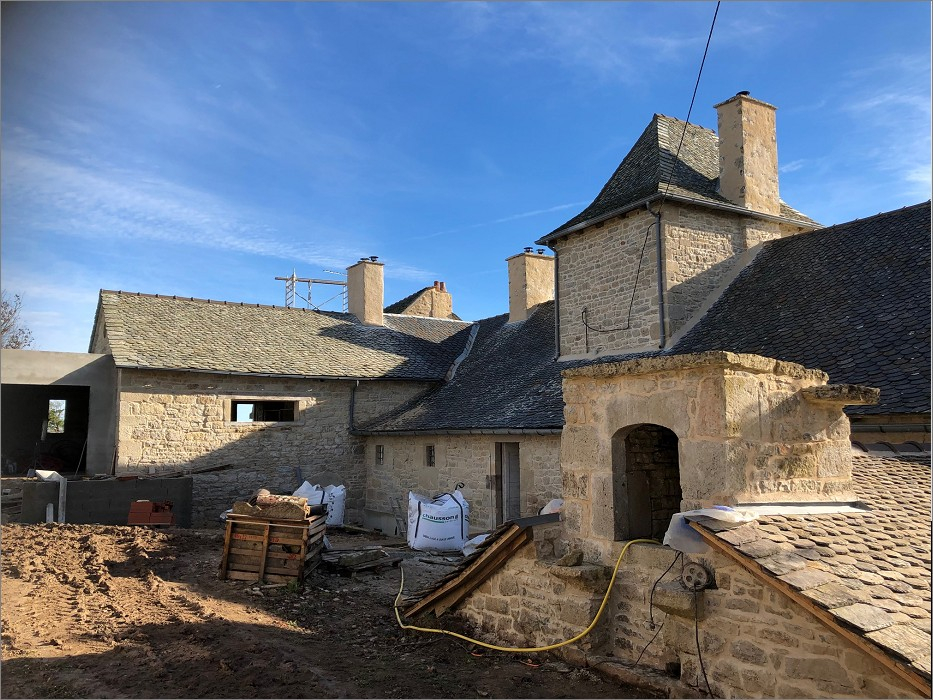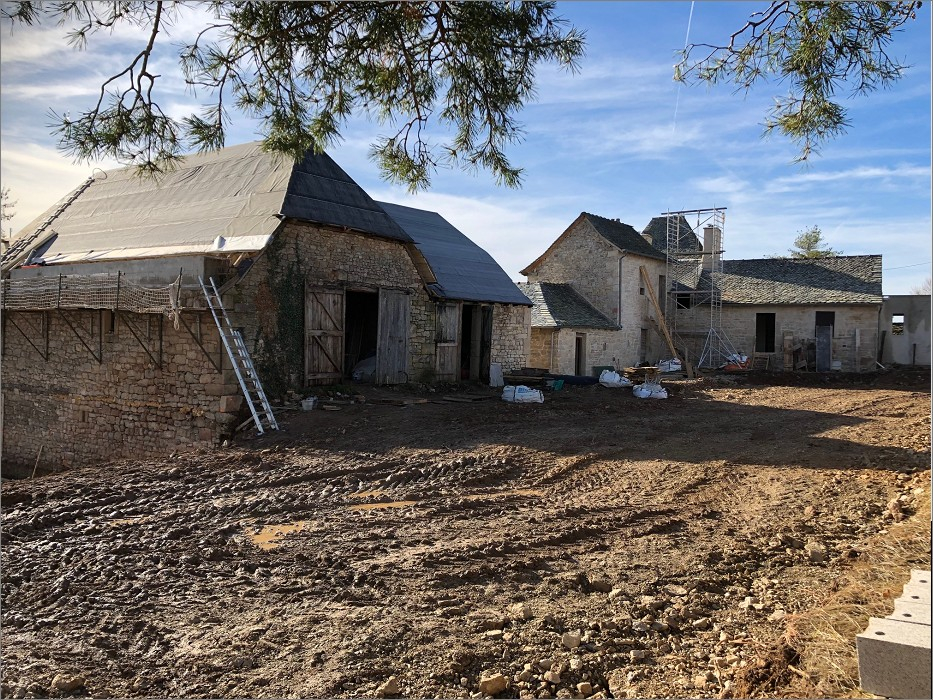 Majorac will become 5 star cottages. The heating will be in geothermal with a drilling of 100 meters, and all the roofs will be redone representing more than 3000 hours of work. The outbuildings will be converted into a reception room with a built extension of 250 square meters to accommodate more than 150 people. A car park will be created for 80 cars generating more than 1000m3 of embankments reused by Didier in his landscaped garden. An infinity pool will be installed from 5 by 19 meters with “of course” its pool house. In total, more than 1400 m2 of built-up area will be fully renovated or constructed, meeting ERP standards.