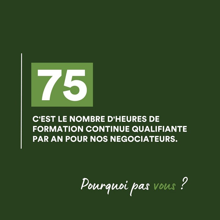 75 heures de formation continue qualifiante par an, pour atteindre vos objectifs de vente, vous maintenir à la pointe du secteur immobilier dans un groupe familial, porté sur l'humain et l'amour du caractère. Vous vous êtes dit "pourquoi pas moi ?" et vous avez raison, pourquoi pas vous ?