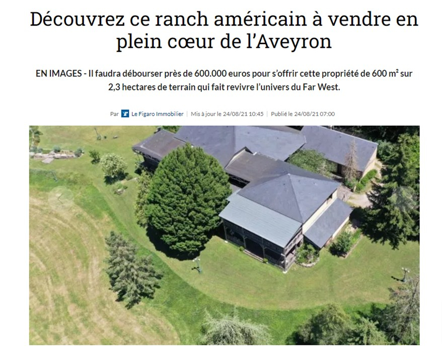 Si l’Ouest américain, ses grands espaces et ses saloons vous ont toujours fait rêver, l’opportunité de s’offrir un cadre totalement dépaysant est unique. Après plus de 20 ans à faire vivre leur rêve de ranch américain en plein cœur de l’Aveyron (à Saint-Radegonde, non loin de Rodez, plus précisément), Alain et Paule Tournier souhaitent passer la main. Ils ont décidé de le proposer à la vente via Sélection Habitat - Agence Hamilton, au prix de 599.000 euros.