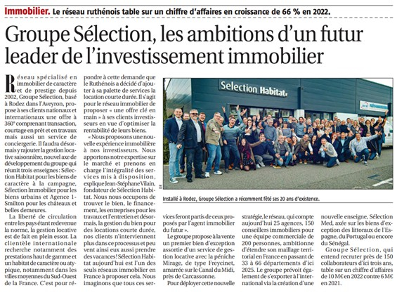 Dans l'édition spéciale "Habitat - L'émotion au coeur de l'architecture" du magazine Atout Aveyron, la stratégie multi-services de Selection Groupe est mise à l'honneur. Proposer une nouvelle expérience immobilière à haute valeur humaine, voilà l'objectif affiché par Jean-Stéphane Vilain, président fondateur, qui développe au sein de Selection Groupe différentes entités enrichissant son coeur de métier.