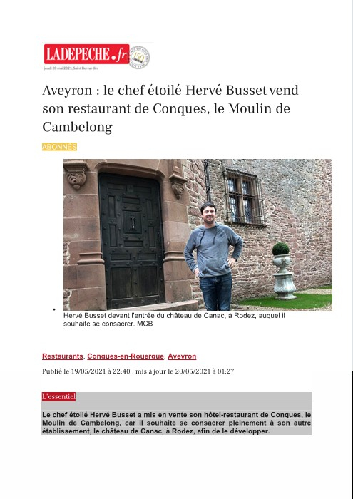Le chef étoilé Hervé Busset vend son restaurant de Conques, le moulin de Cambelong