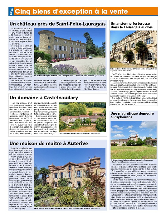 Ce groupe immobilier est à la tête des agences Hamilton de Carcassonne et Mirepoix, spécialisées dans les biens de prestige et qui comptent dans leur portefeuille plusieurs châteaux, belles demeures ou maisons de maître situés dans le Lauragais.