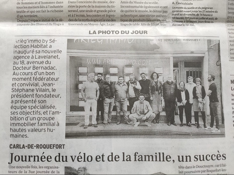 La Dépêche Ariège revient sur l'inauguration de notre nouvelle agence à Lavelanet pour l'agence Arieg'Immo by Selection Habitat !